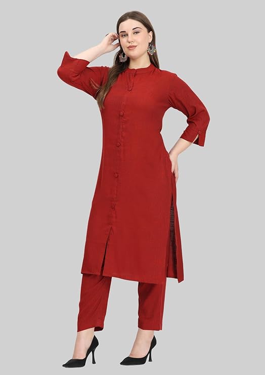 - A classic knee length kurti that has a buttons in the front and on its sleeves . The elegant 3/4th sleeves strikes a perfect balance between style and comfort. The very elegant Mandarin collar which is also known as chinese Collar enhances the looks of the kurti , On both the ends the Sleeves it has a Slit designs to give a stylish look . All the design aspects of the Kurti gives an elegant and classy feel .