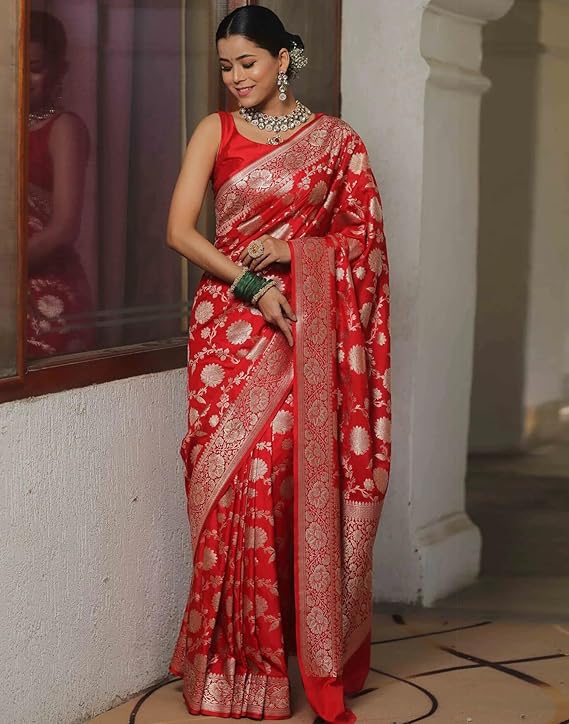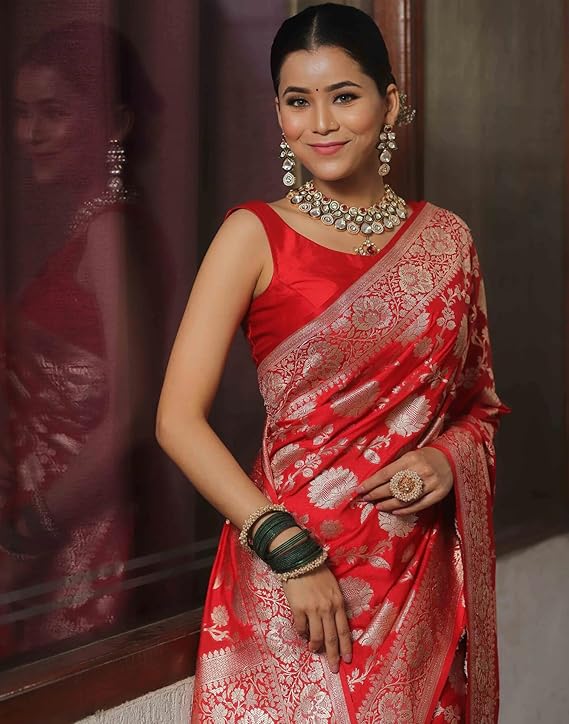 - Colour:: Saree Color: Red | Blouse Color: Red