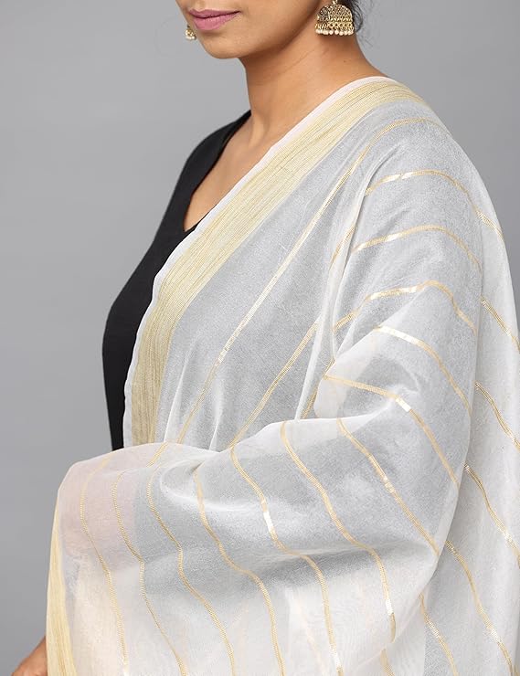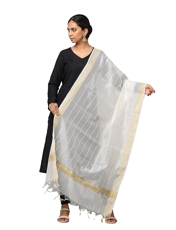 Women’s Chanderi Silk 2.25 Meter Dupatta with Zari Stripes & Border